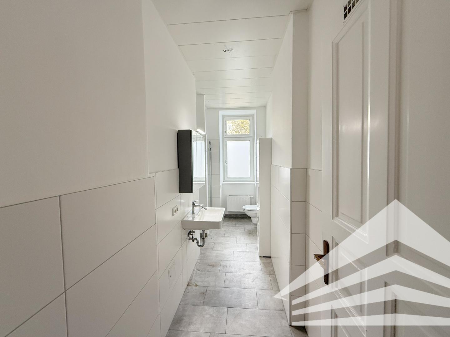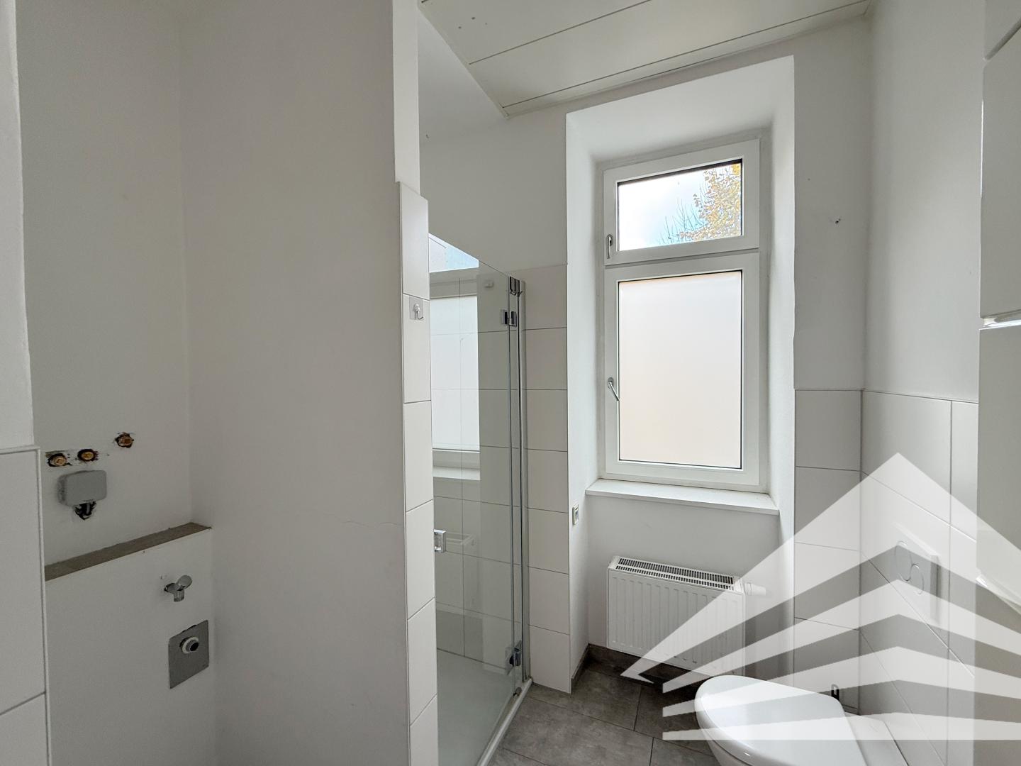 - Bad mit Dusche, WC, Fenster und WM-Anschluss