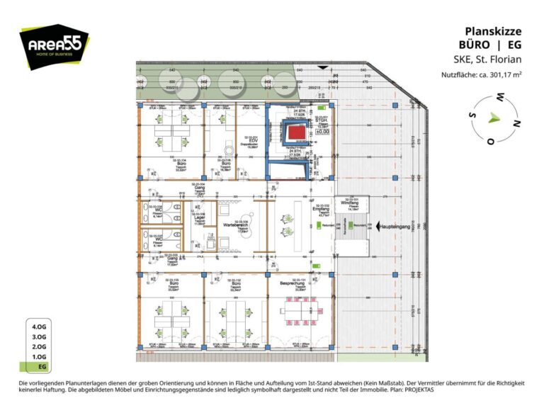 Dieses attraktive und moderne Gewerbeprojekt AREA55 (www.area55.at) auf einer Gesamtfläche von über 50.000 m² bietet ab Ende 2025 neuen Raum für zukunftsorientierte Unternehmen. Auf dem Areal entsteht eine effiziente Mischung aus servicierten Lager- und Logistikflächen gepaart mit modernen Bürolösungen verschiedener Größen.