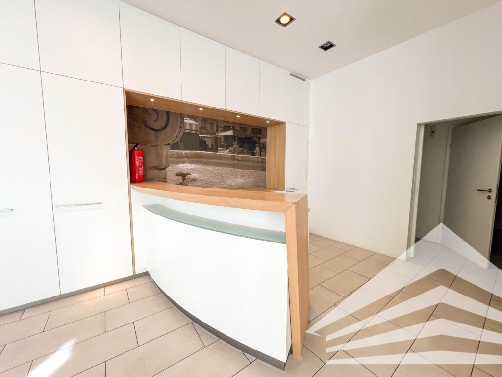 Der geschmackvoll ausgestattete Geschäftsraum eignet sich hervorragend für ein kleines Geschäftslokal oder Büro mit Kundenverkehr.