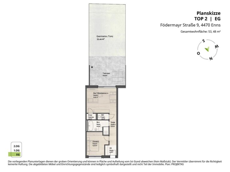 - ca. 30 m² Terrasse und ca. 53,44 m² Eigengarten