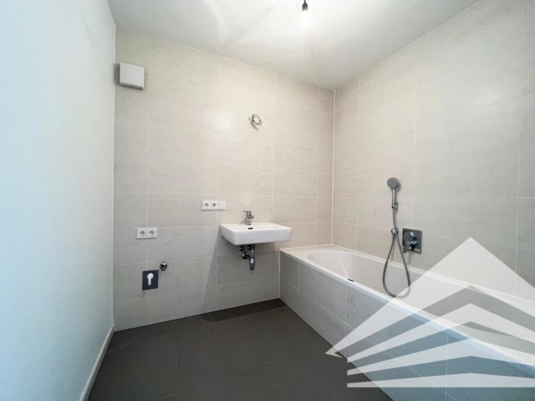 > Badezimmer mit Wanne und Waschmaschinenanschluss