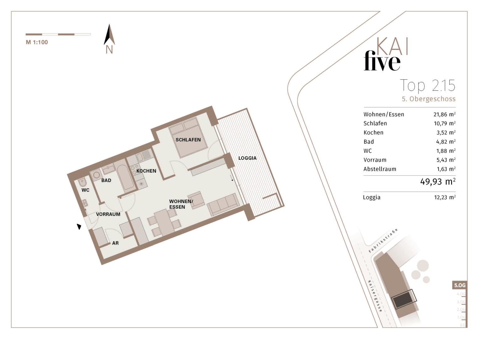 Die Wohnung TOP 2.15 befindet sich im 5ten und somit obersten Stockwerk des Hauses und ist gänzlich in den ruhigen, begrünten Innenhof ausgerichtet.