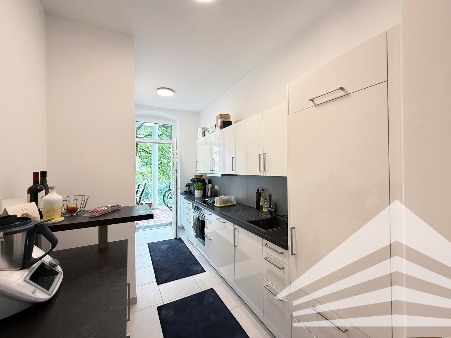 - Küche (neuwertig möbliert - ablösefrei) mit Zugang zum Innenhofbalkon