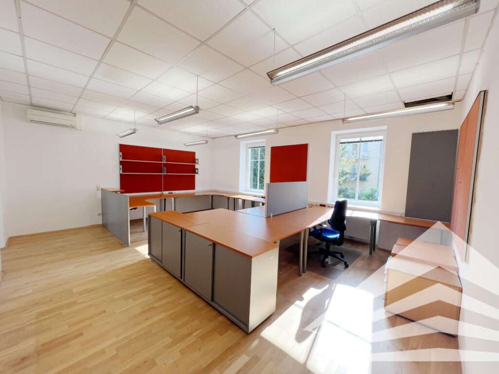 Die beschriebene Einheit liegt im 1. Stock des Gebäudes und besteht aus 5 Räumen zwischen ca. 12 m² und ca. 95 m².