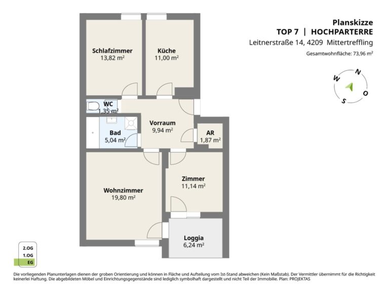 Raumaufteilung der Top 4 mit ca. 74 m²:
