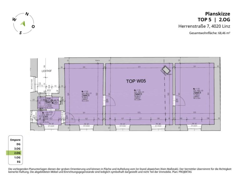 Raumaufteilung der Top 5 mit ca. 68 m² Wohnfläche: