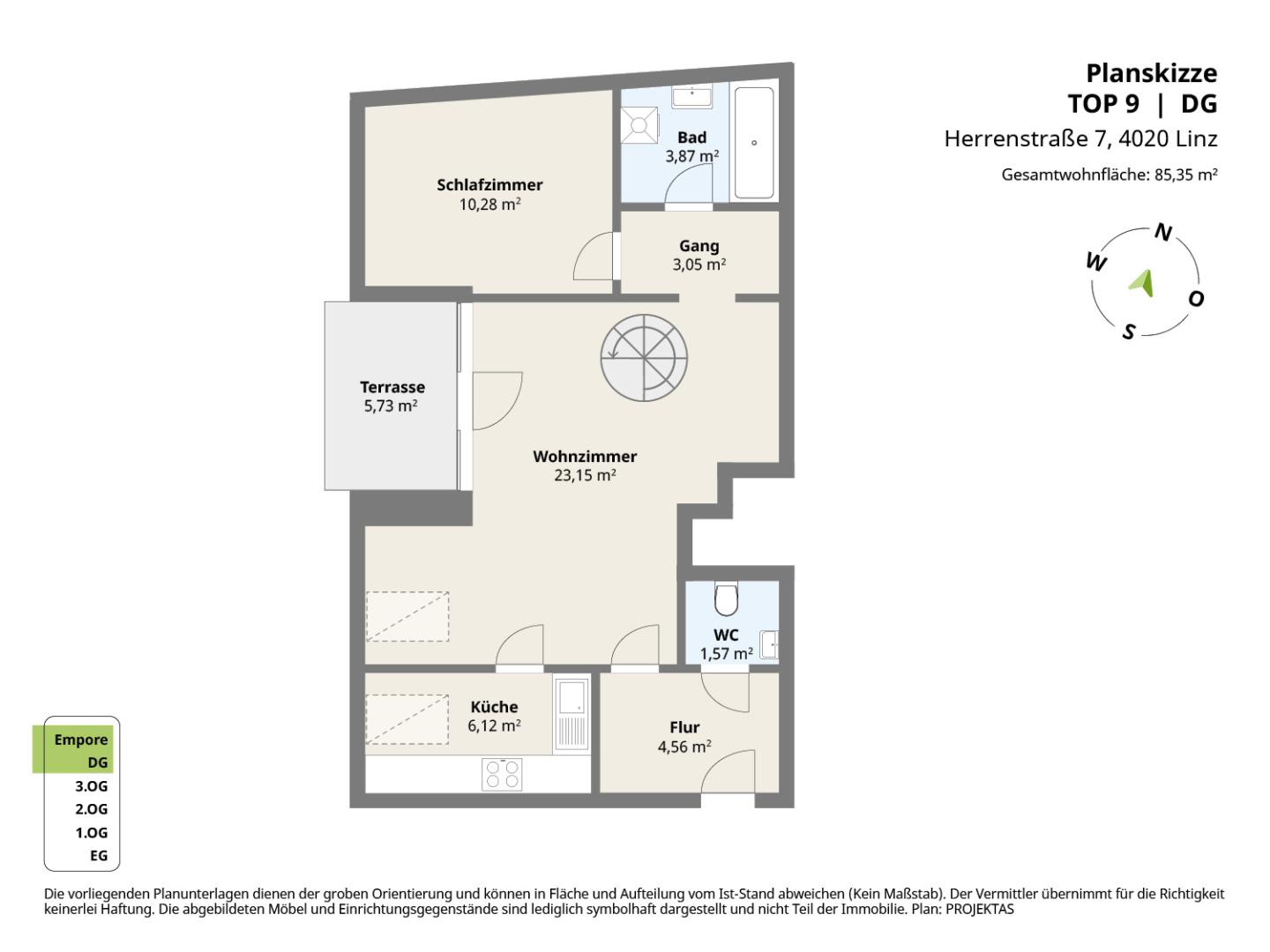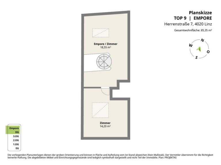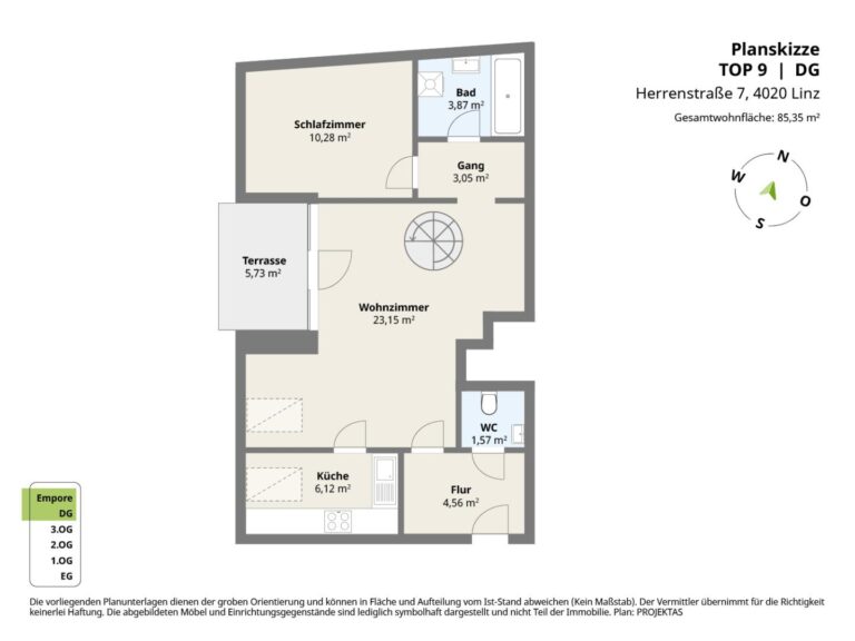 Raumaufteilung der Top 9 mit ca. 85 m² Wohnfläche: