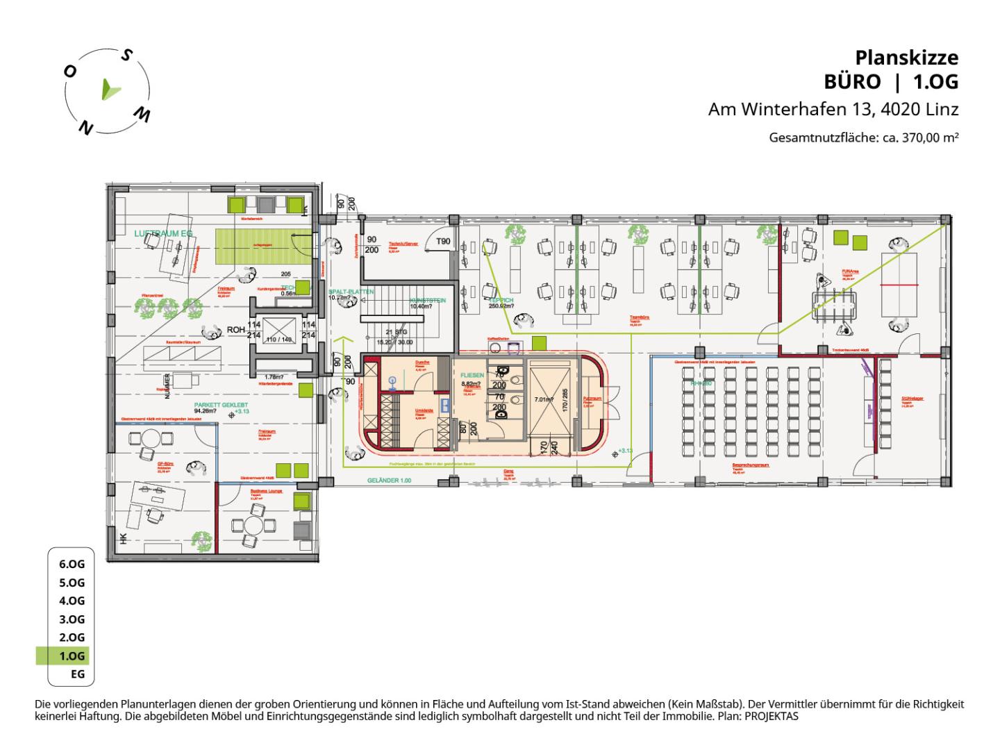 Zum raschen Bezug lädt diese modern und attraktiv gestaltete ca. 370 m² große Bürofläche im 1. OG am Winterhafen 13.
