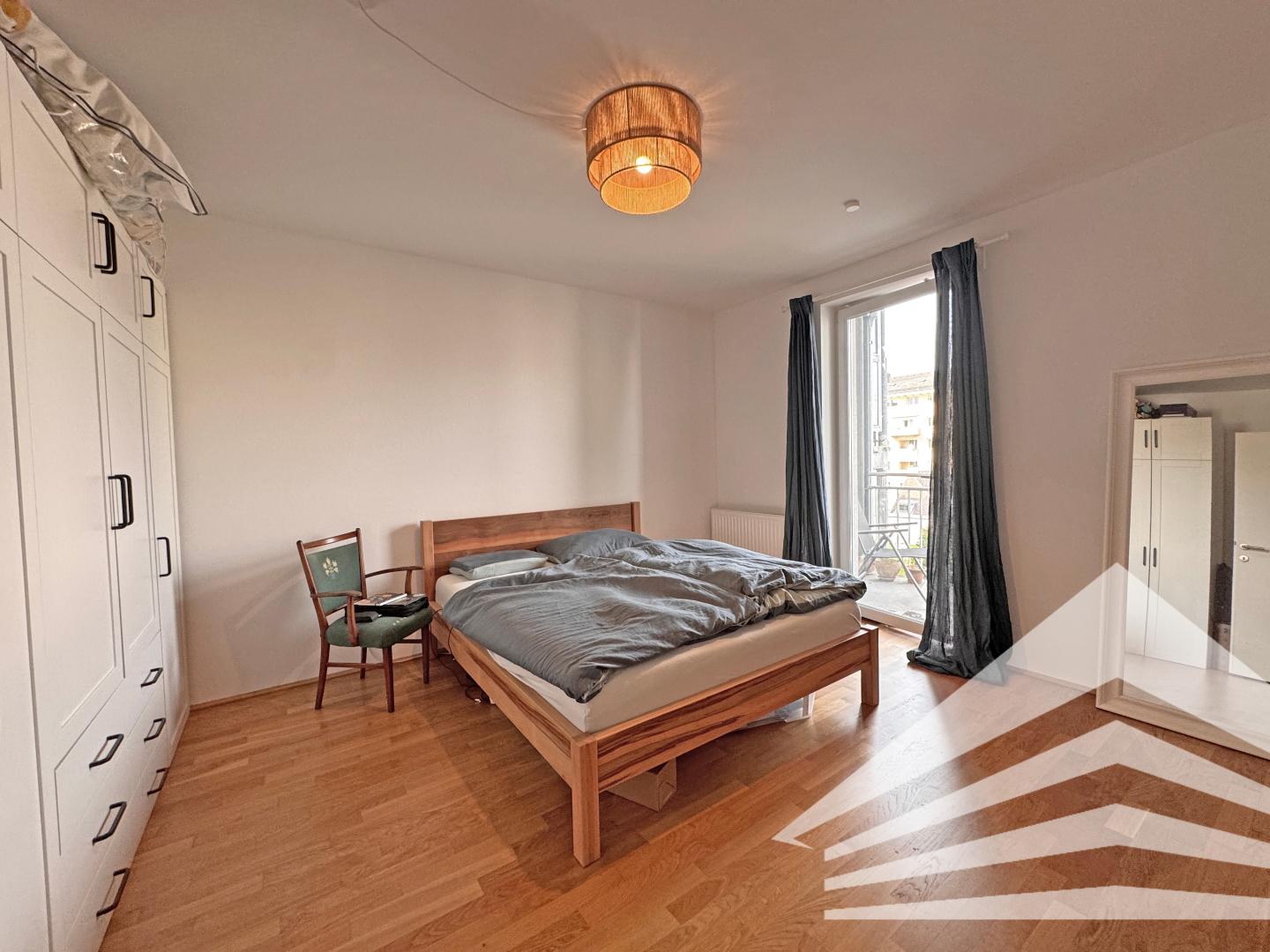 > Großes Schlafzimmer (Parkett) mit Balkon (in den ruhigen Innenhof ausgerichtet)