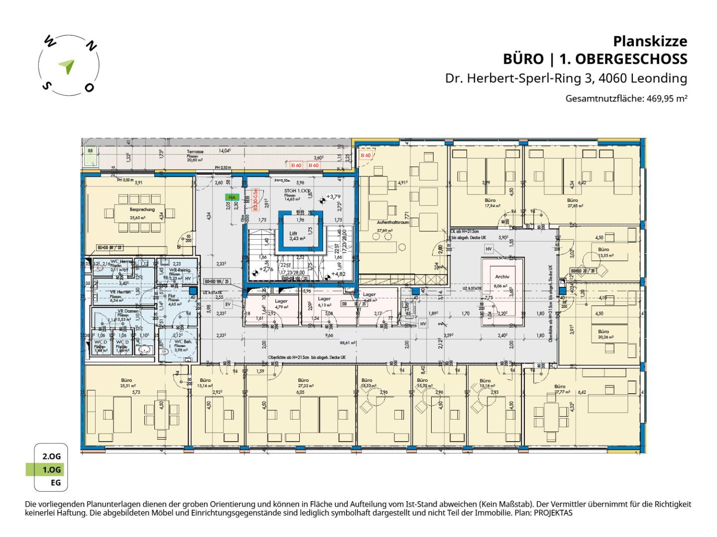 Im 1. Obergeschoss des Bürohauses Dr. Herbert Sperl Ring 1 steht eine attraktive Bürofläche mit ca. 470 m² zur Verfügung. Der effizient gestaltete Grundriss bietet Büroräume zwischen 13 m² und 28 m², Besprechungsräume, Sozialraum mit Teeküche und angeschlossenem Balkon, klimatisiertem Serverraum, Archivräume und vieles mehr. Es besteht die Möglichkeit die vorhandene Büromöblierung nach Vereinbarung zu übernehmen.