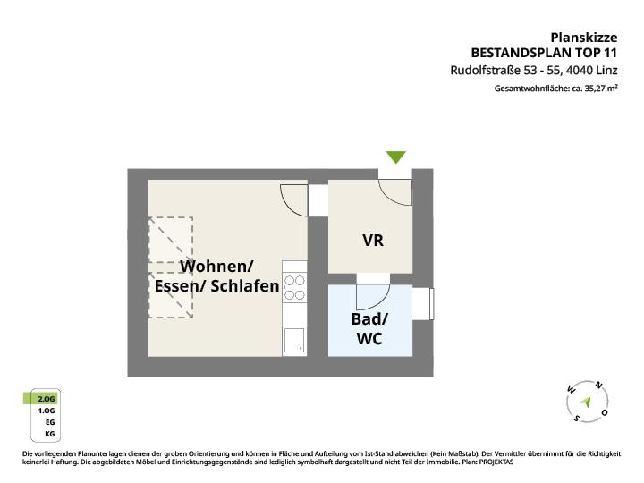 Raumaufteilung der Top 11 mit ca. 35m² Wohnfläche: