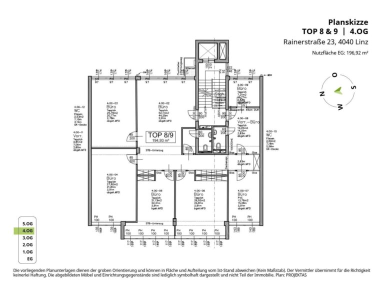 • Ausstattung: Teeküche, Öffenbare Fenster, Bodenbelag: Teppichfliesen, Sonnenschutz aussen