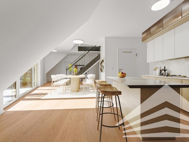 Für ein besseres räumliches Verständnis können einzelne Bilder digital möbliert worden sein und zeigen beispielhafte Einrichtungsvorschläge. Die abgebildeten Möbel sind nicht im Angebot enthalten.