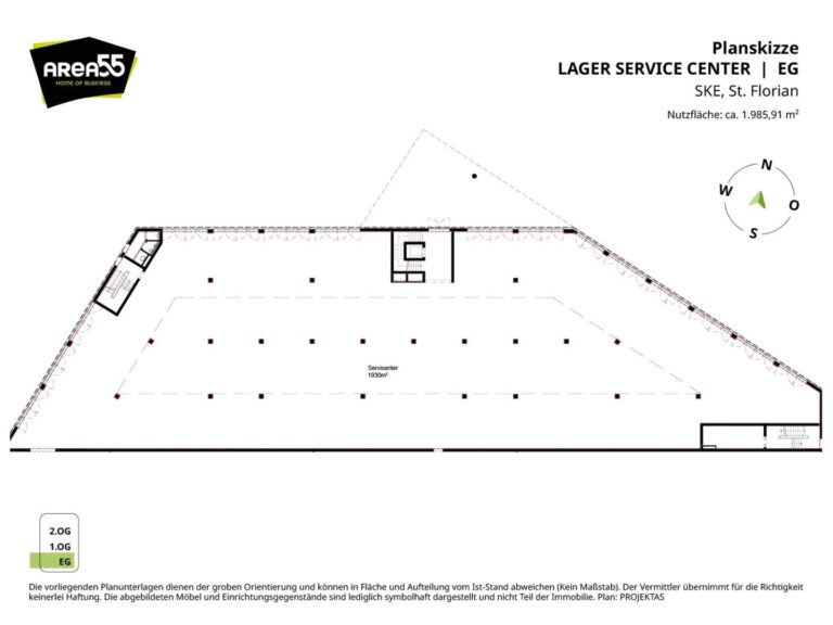 Lagerfläche: ca. 1.930 m² mit Erweiterungsmöglichkeiten (9 m Höhe)