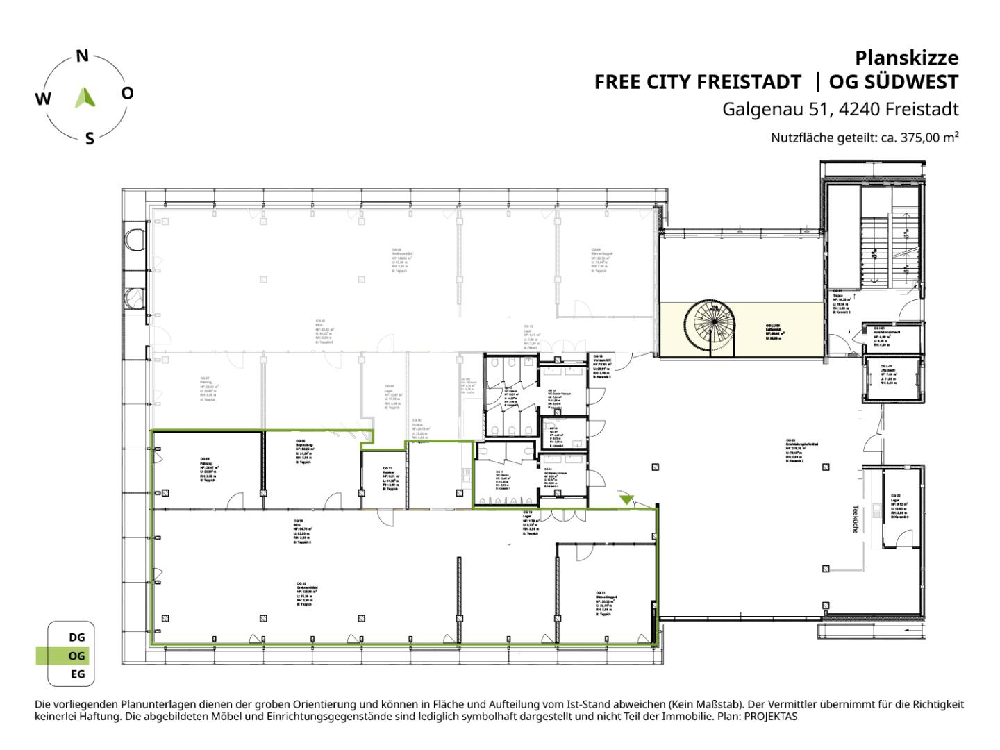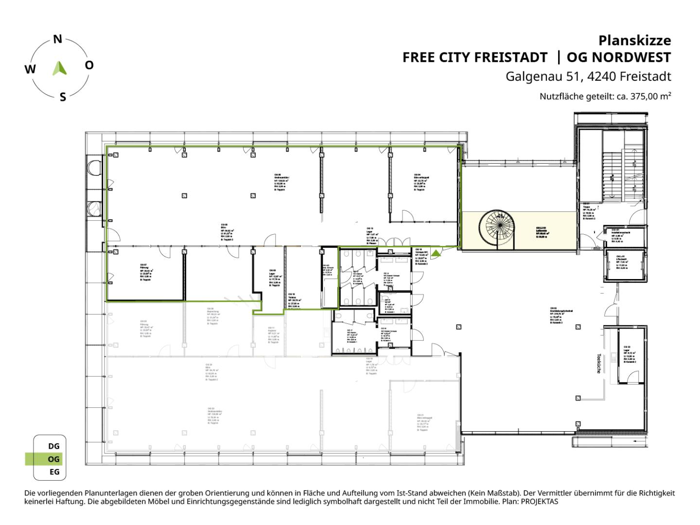 Bürofläche: ca. 375 m² (weitere Optionen möglich)