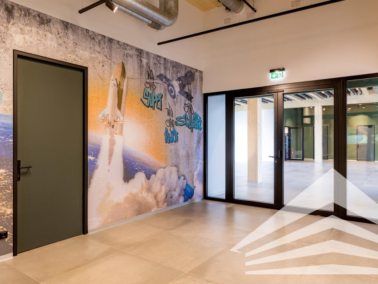 Vom zentralen Empfangsbereich des Gebäudes betritt man die abgetrennte Mietfläche mit einem ca. 50 m² großen Eingangsbereich welcher auch als Schauraum geeignet ist.