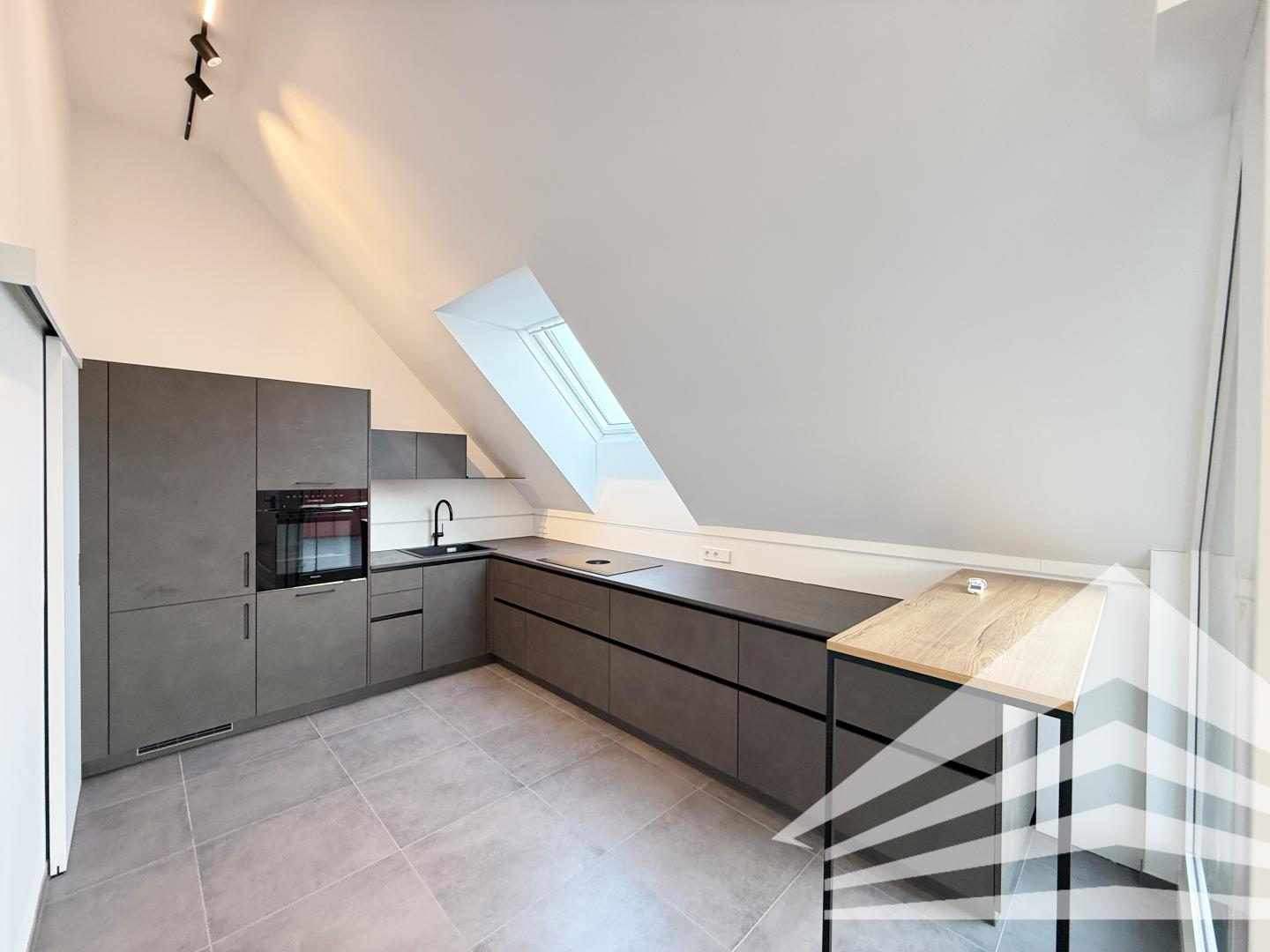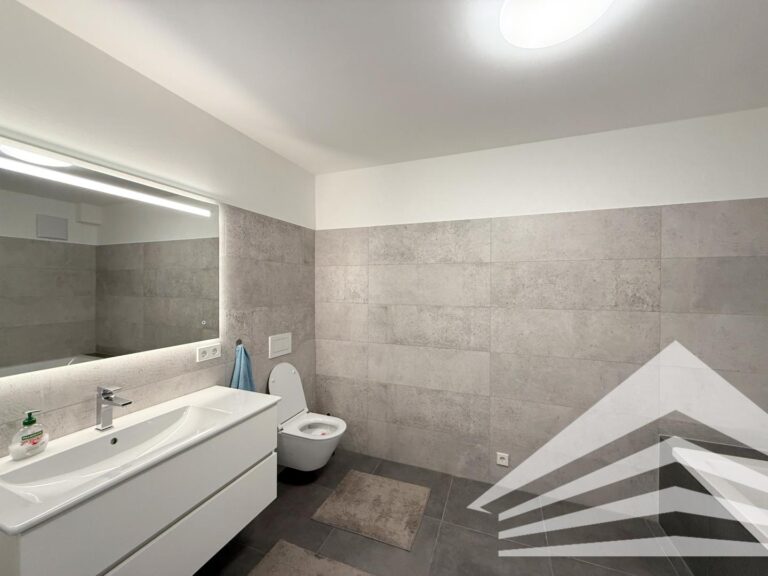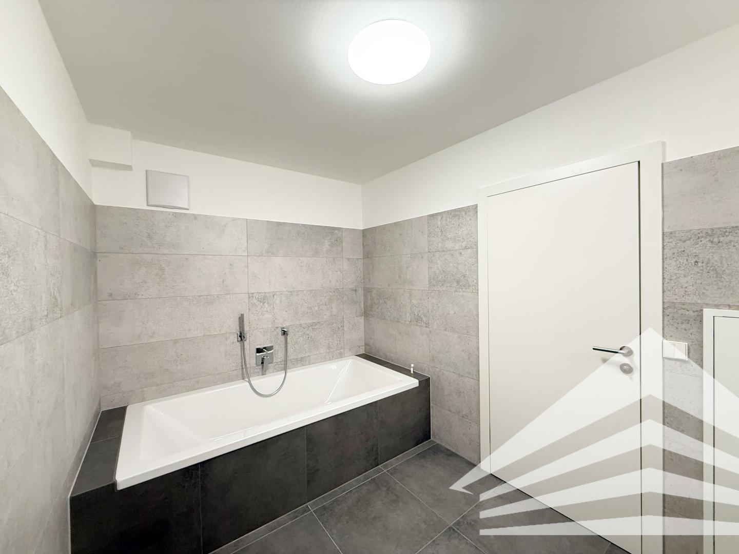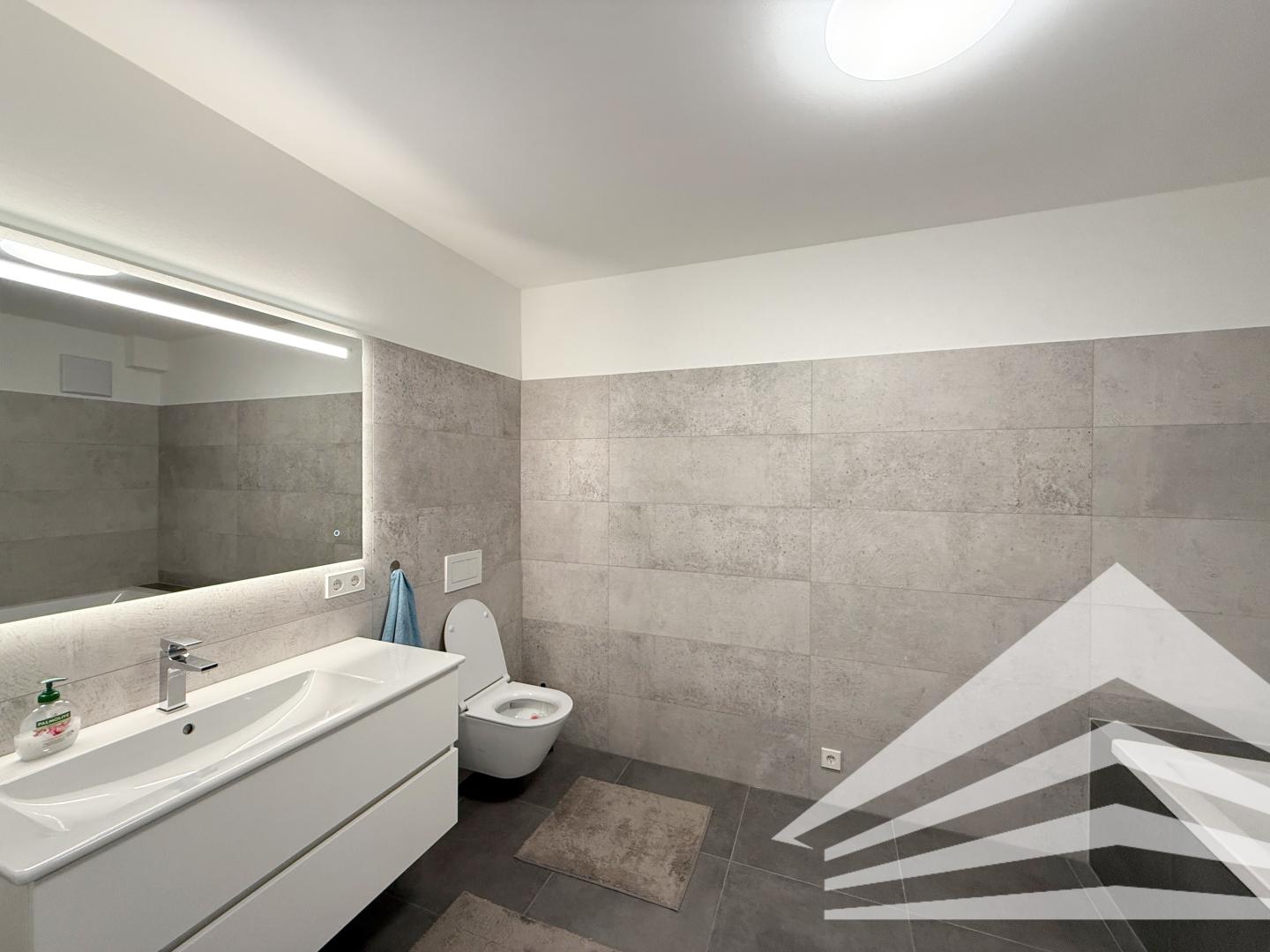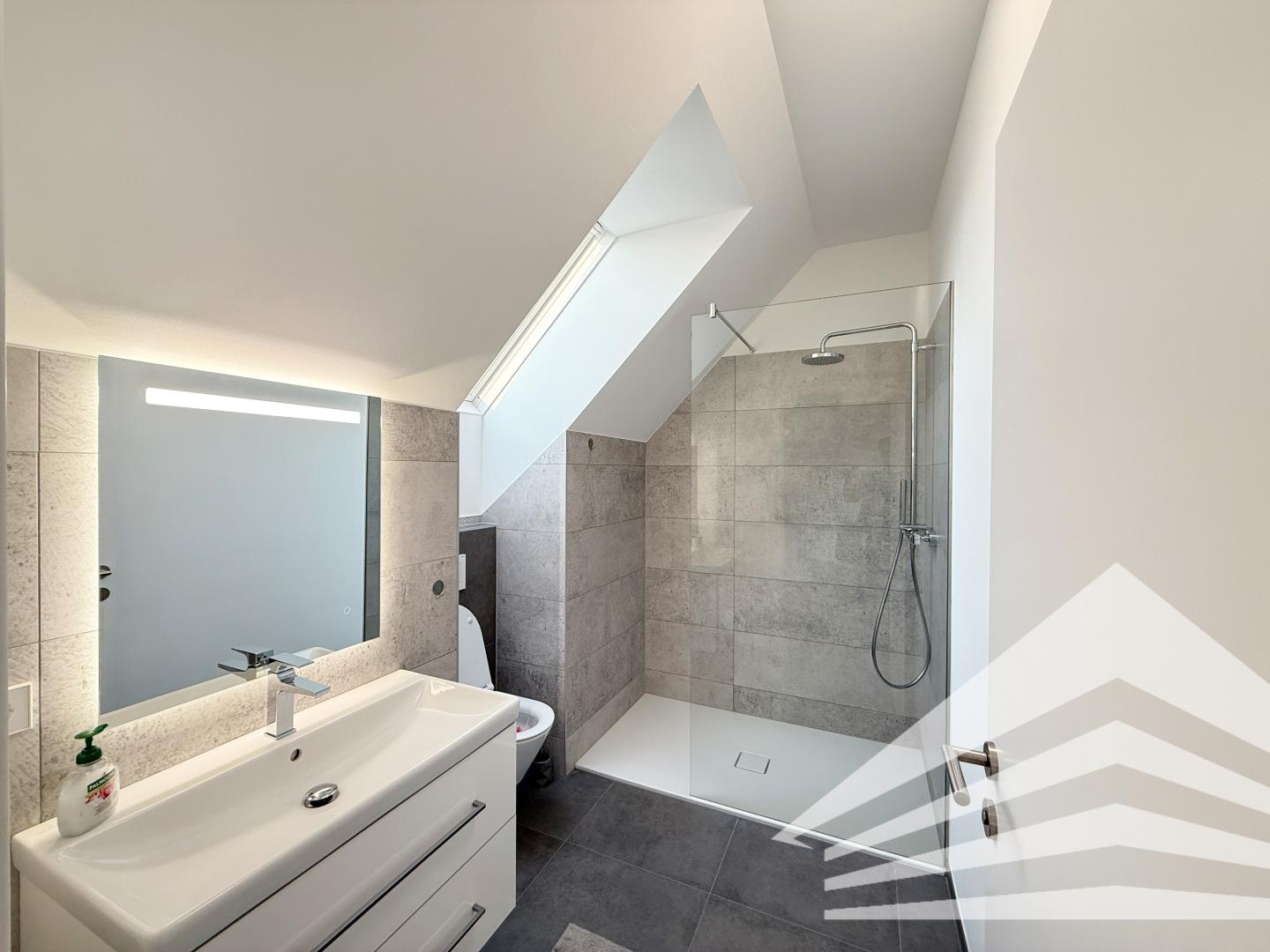 - Modernes Bad inkl. Waschbeckenverbau und Designerspiegel mit Wanne und WC im DG