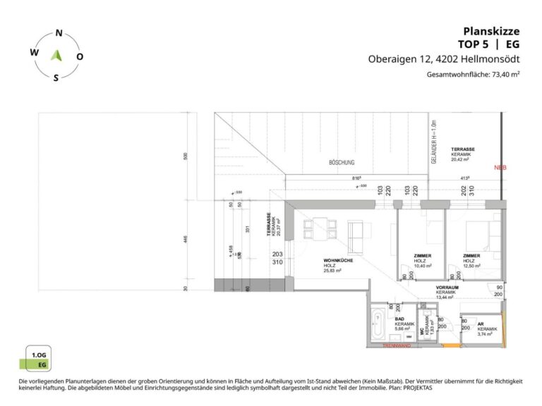 Der Rittsteigerhof in Hellmonsödt liegt malerisch am sonnigen Waldrand im Ortsteil Oberaigen und ist mit dem Auto in nur wenigen Minuten vom Ortszentrum (3,5 km) erreichbar. Die Fahrzeit vom Hauptplatz Linz über die B 126 beträgt ca. 30 Minuten. Öffentliche Post-Busverbindungen sind in ca. 2 Km Entfernung. Der Loipeneinstieg zur Nordic Arena befindet sich unmittelbar neben dem Rittsteigerhof. Parkplätze sind am Objekt in großer Anzahl vorhanden. Garagenparkplätze können für € 80,00 brutto / Monat inklusive Betriebskosten angemietet werden.