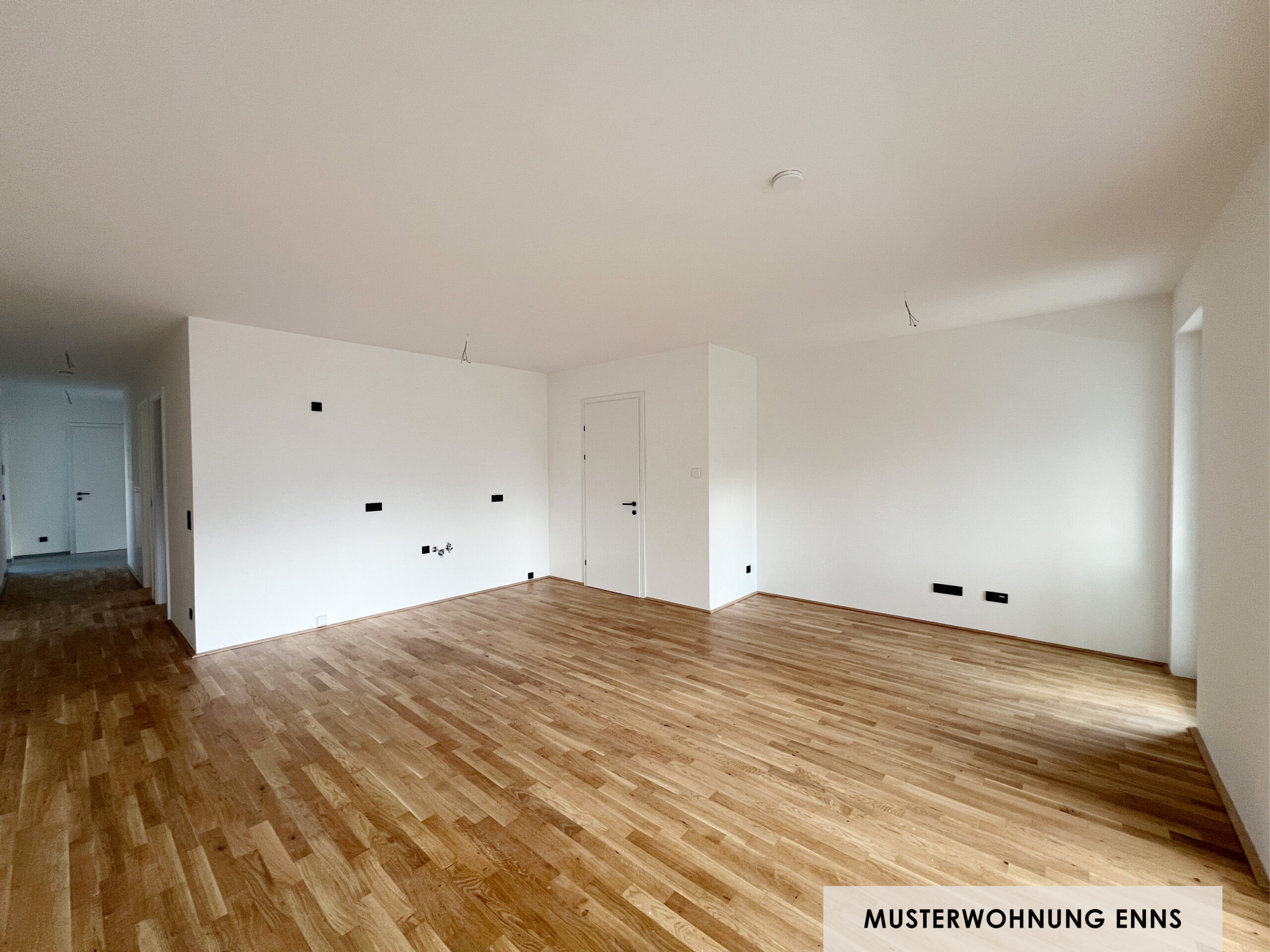 In allen Wohnräumen schafft Eichenparkett ein warmes, stilvolles Ambiente, das sich sowohl klassisch als auch modern möblieren lässt. In den Badezimmern und WCs kommen moderne Fliesen bzw. Feinsteinzeug mit klarer Optik, hoher Pflegeleichtigkeit und zeitlosem Charakter zum Einsatz.